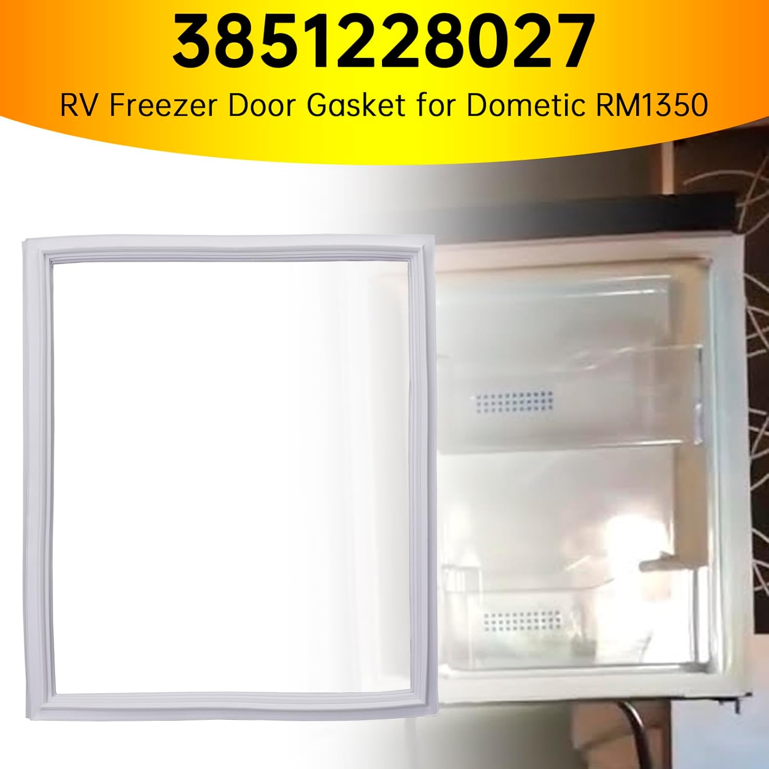 RV Freezer Door Gasket 3851228027 for Dometic RM1350Feature: Specification Size : 3851228027 Refrigerator door gasket can better seal the refrigerator, keep the food inside the refrigerator fresh, stop the cold air leakage, avoid refrigerator freeze and water leaksQuality Rubber, Durable & Resiliently: 3851228027 freezer parts for frigidaire is made of high quality rubber which is very durable. it will be well protected from cold air leaks, dripping, and icing after installation.Easy Installation: You may need to prepare a screwdriver, a hair dryer, a roll of tape. Then began to install: step1,Unscrew the panel, remove the old freezer door gasket; step2,Install the four corners first and then press the middle back and forth to make it docile; step3,After installation, use a hair dryer to heat up the sealing strip and blow it for a while to smooth the creases; step4,Fix the refrigerator door with tape until the next day.Specifics:Condition: Brand NewManufacturer Part Number: 3851228027 Dimensions: 38.5cm*45.5cm (OD)★Fitment:Fit for Dometic RM1350★Package Include:1 * Gasket
