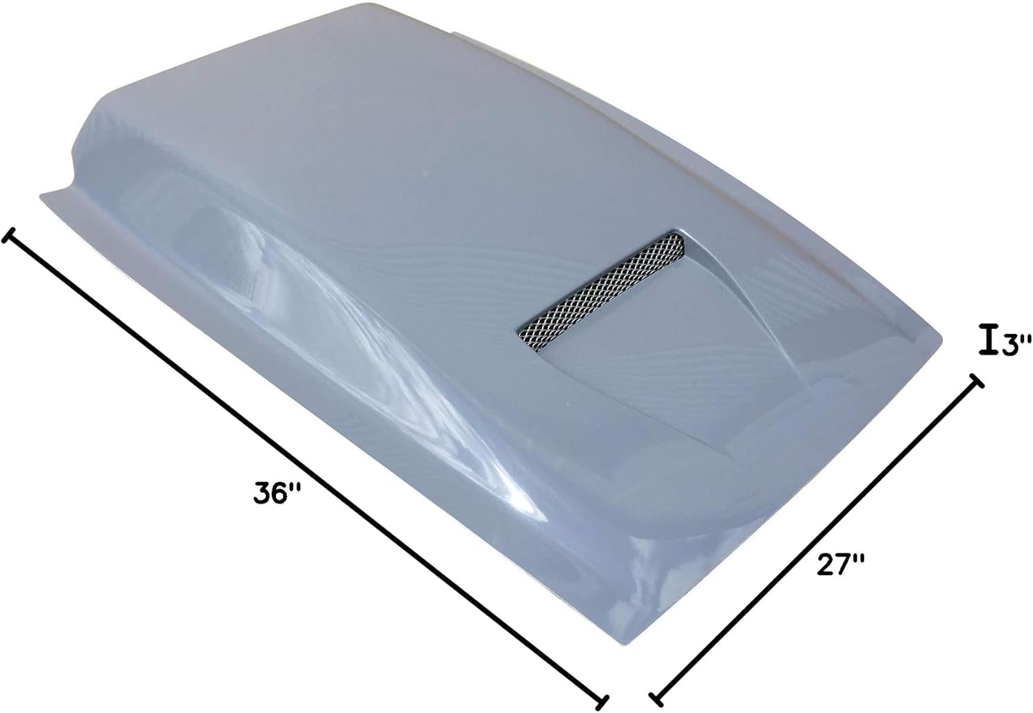 Overall Dimensions: 36" L x 27 W" x 3" H inches Includes removable mesh grill. Material: hand laid fiberglass with gray surface gelcoat. MADE IN USA