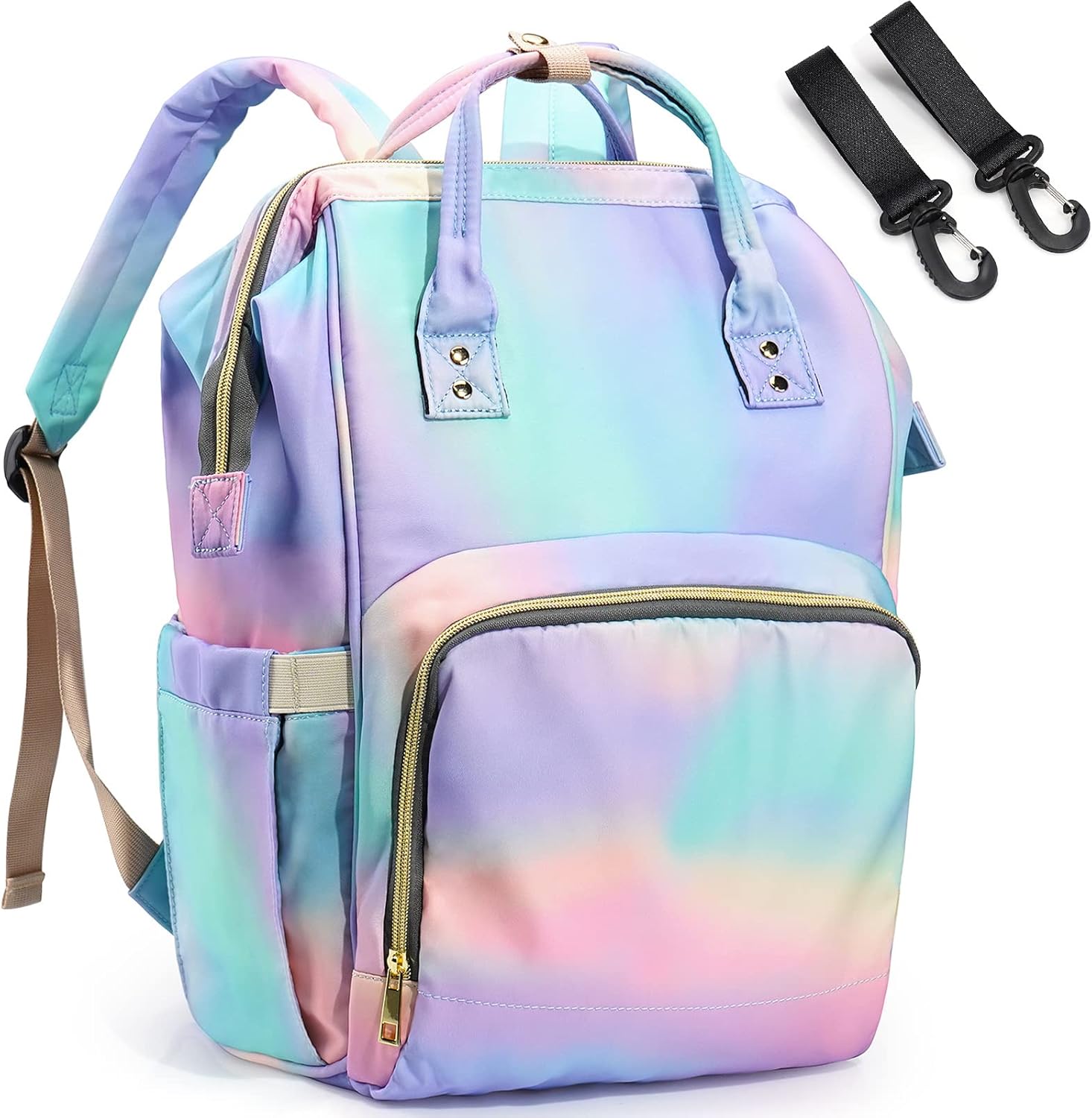 Material - High quality durable oxford. Size - 17*11*8 inches(H * L * W) (There may be a slight difference).Weight - 0.5 kg. Comfortable and Breathable Shoulder Strap - Adjustable Wider shoulder straps (2 inches) which helps reduce your shoulder and back burden. Hanging Up On the Stroller - Including two stroller straps that can be hung on the stroller. Convenient For Travel - Unique opening makes it perfect for travel and adventure. Safety warning - Do not hang the package directly on the stroller, so as not to overweight and cause the stroller to overturn.