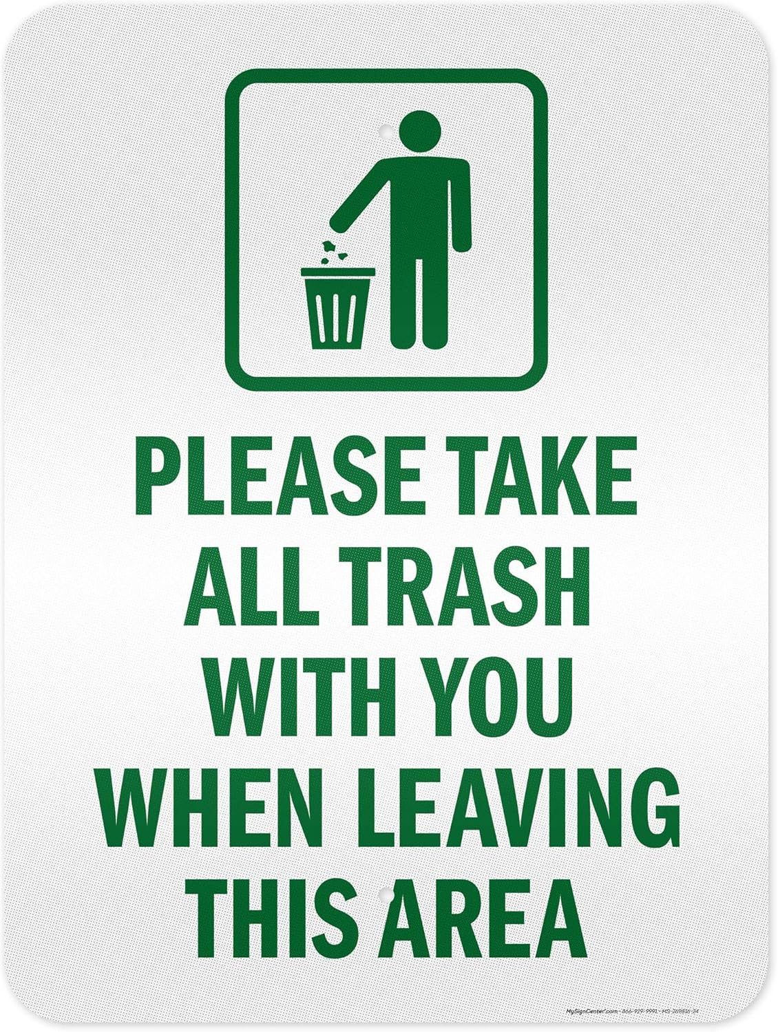 Please Take All Trash With You When Leaving This Area Sign, 18x24 Inches, 55 mil thick HDPS (high density polystyrene), Made in USA by My Sign Center