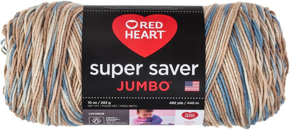 Red Heart Super Saver Jumbo yarn is the same Super Saver yarn you love in larger skeins. Each Super Saver Jumbo skein is the size of two skeins of the regular Super Saver, so you have half as many ends to weave in. This yarn now comes in gorgeous ombré prints. Colors move from light to dark and back again so you get that gradient look without changing skeins. The yarn does all the work for you all in one skein. Make a beautiful shawl with just one 10 oz. skein or keep going and make a show stopping throw with 4 skeins! This product holds the OEKO-TEX Standard 100 certification.